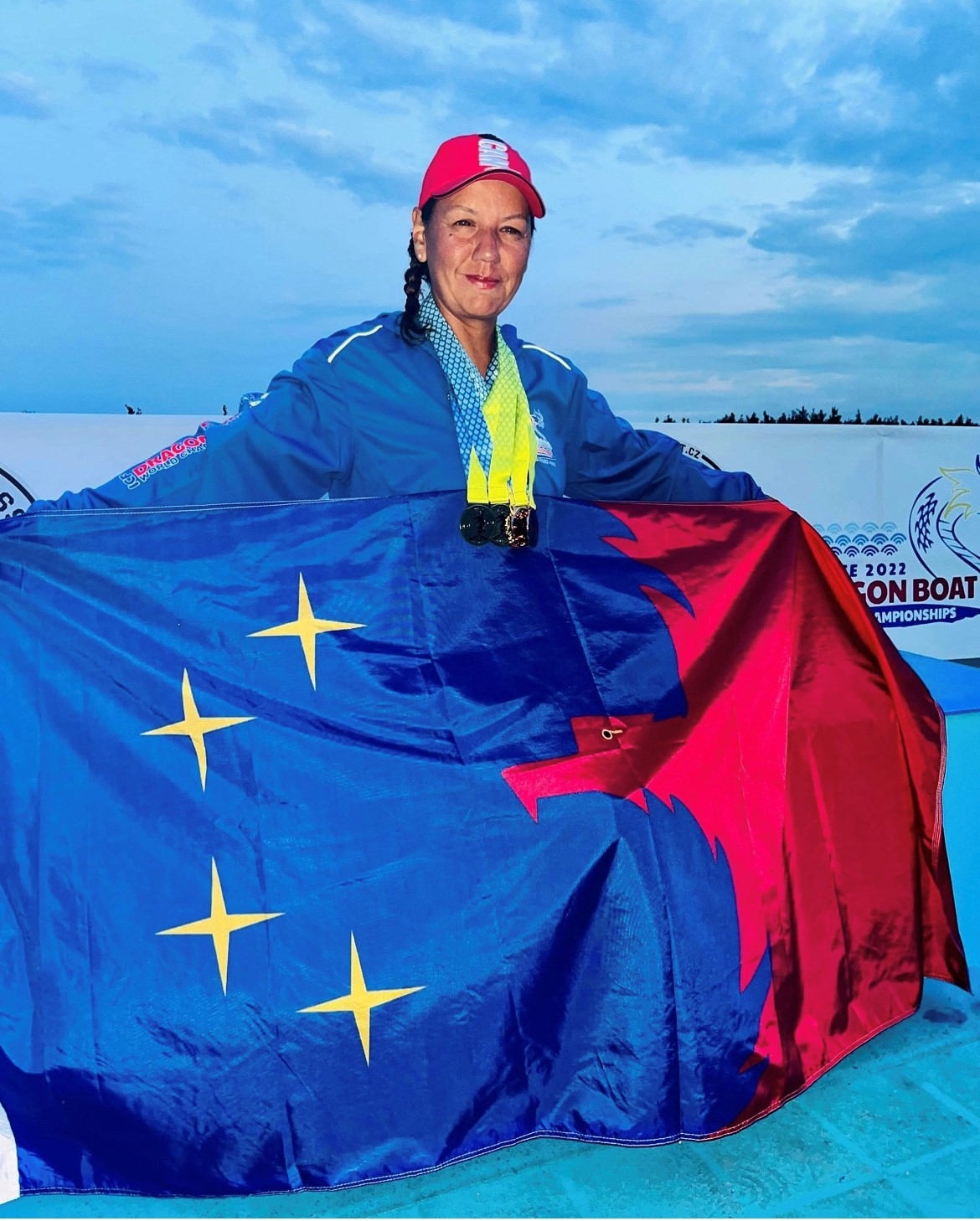 Trina Ross est une fière Crie de la Nation Pimicakamak au Manitoba. Trina participe à des compétitions de bateau-dragon et pratique ce sport depuis 11 ans. Pionnière de l'aviron et de la pagaie, elle est un modèle pour les jeunes générations. Récemment, elle a connu le succès aux Championnats du monde de bateau-dragon de l'IFC, qui se sont déroulés à Racice, en République tchèque, où elle représentait le Canada. Trina a remporté huit médailles - trois d'or, une d'argent et quatre de bronze.